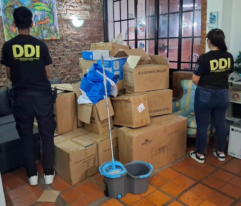 Entre los elementos recuperados había materiales de construcción, equipamiento gastronómico, productos alimenticios, insumos médicos, luminarias, muebles, electrodomésticos y documentación vinculada a la operatoria del grupo.